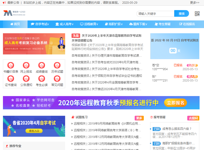 成人继续教育资讯站,成人高考、自学考试教育培训网站模板,seo收录还是不错的,已测试过